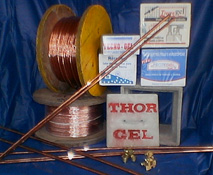 - Varilla de copperweld, barras de acero bañadas con cobre electrolítico puro de 99.99% de pureza. Medidas disponibles de 5/8 y 3/4 de pulgada. Tienen un menor costo que las de cobre puro.